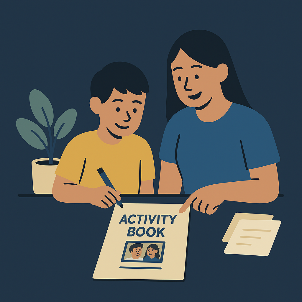 Each child receives their own activity book filled with thoughtful prompts and activities designed to support reflection, conversation, and social-emotional learning.