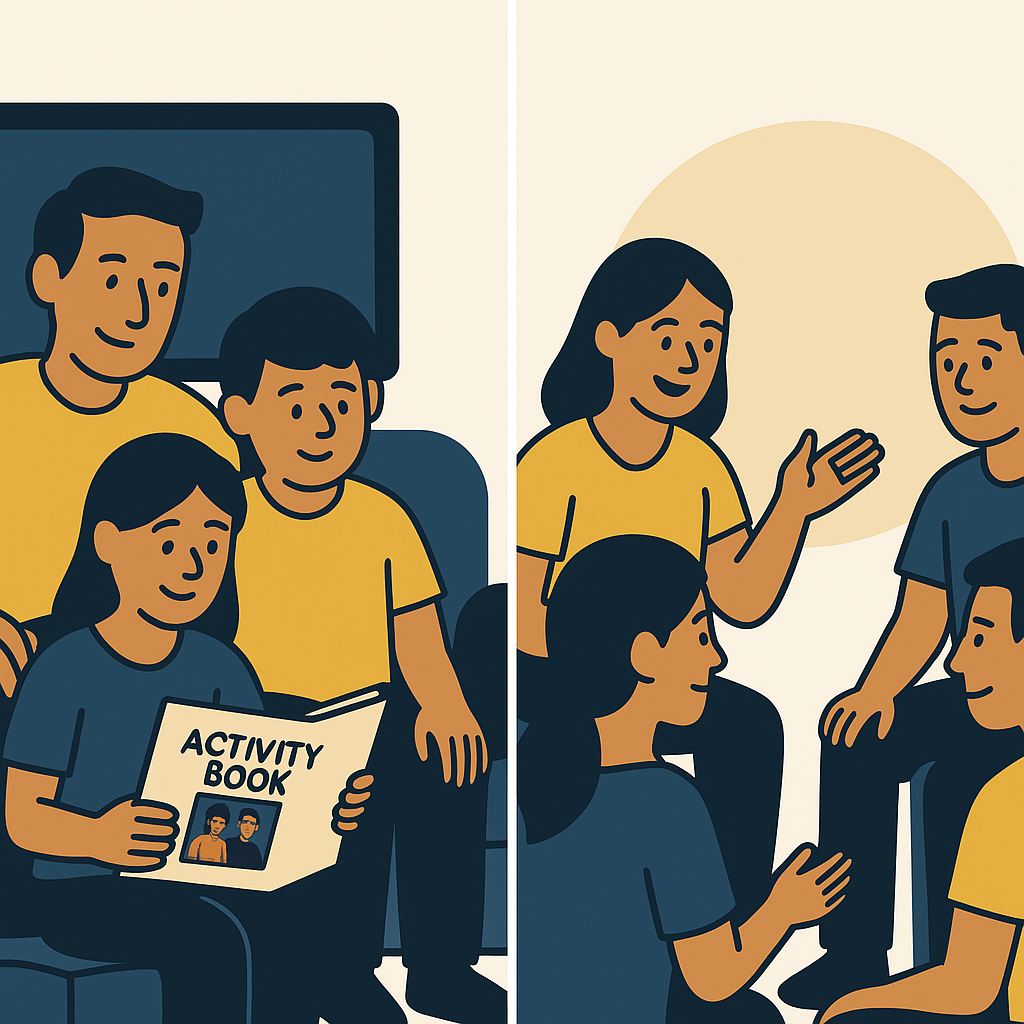 By pairing the movies our parents created with guided activity books, families are given simple tools to talk, connect, and grow together—long after the screen goes dark.